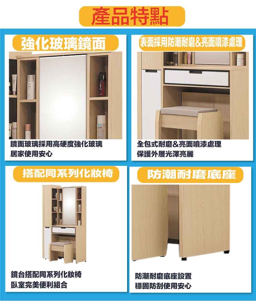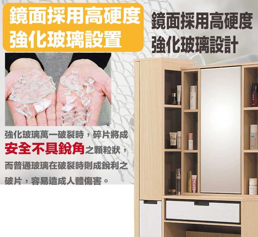 材質:防蛀木心板+防潮MDF板材+五金滑軌結構+強化玻璃鏡面+防潮耐磨底座