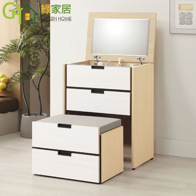 【綠家居】亞卡利雙色2尺多功能變化鏡台/化妝台組合(上掀鏡面+含化妝椅)