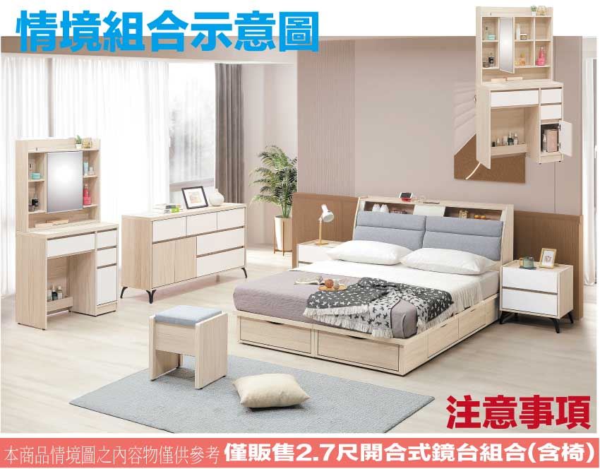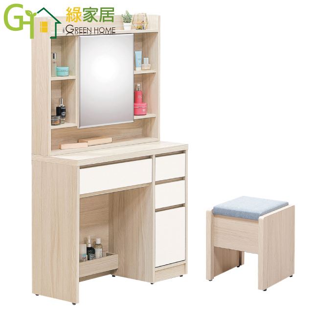 - ◆產品名稱:【綠家居】山多利雙色2.7尺開合鏡面鏡台/化妝台組合(含化妝椅)