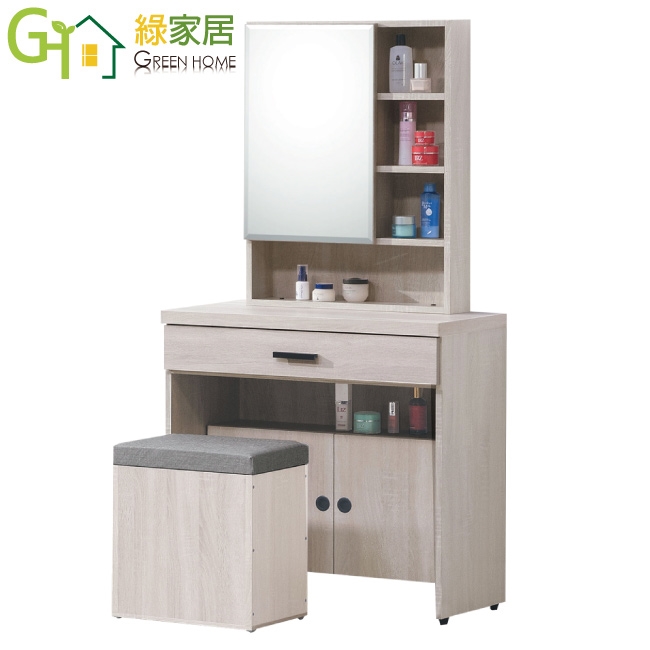 【綠家居】艾曼淺橡2.7尺開合鏡面鏡台/化妝台組合(含化妝椅)