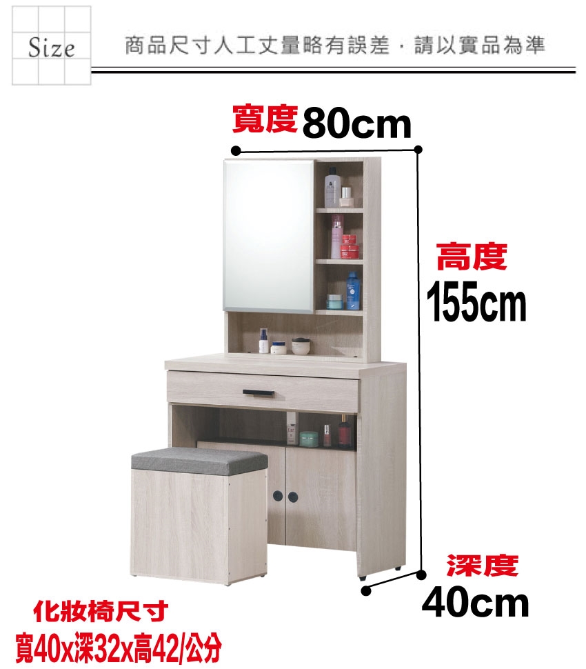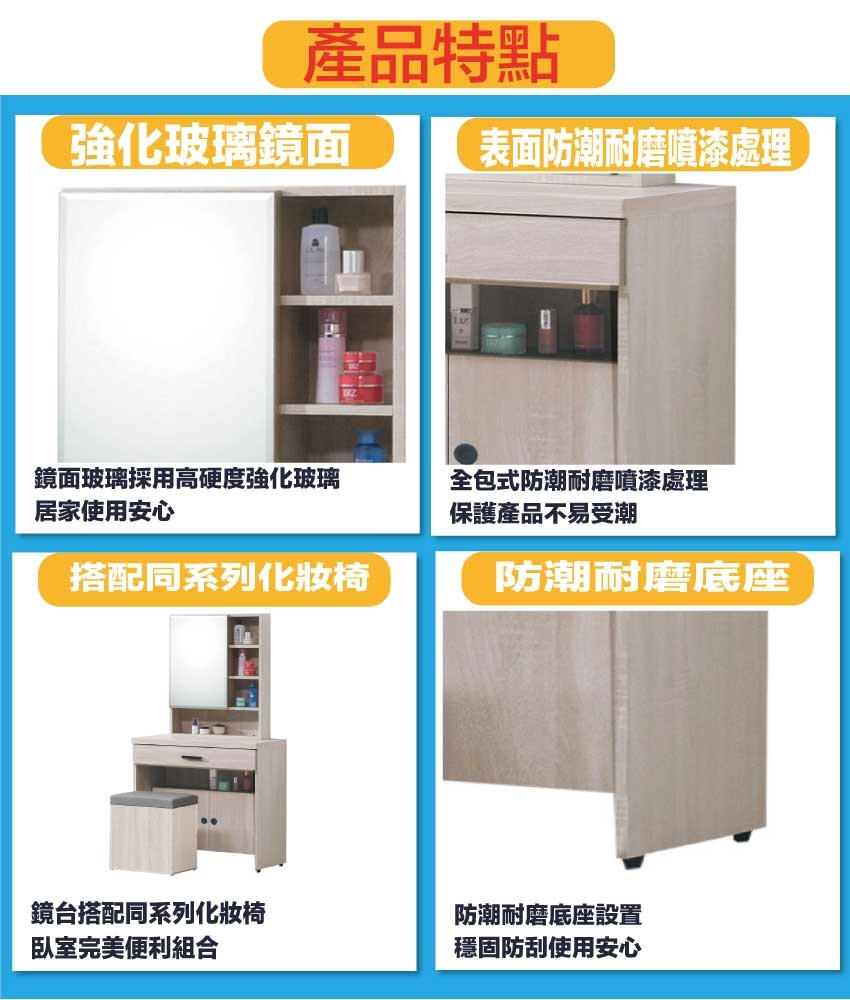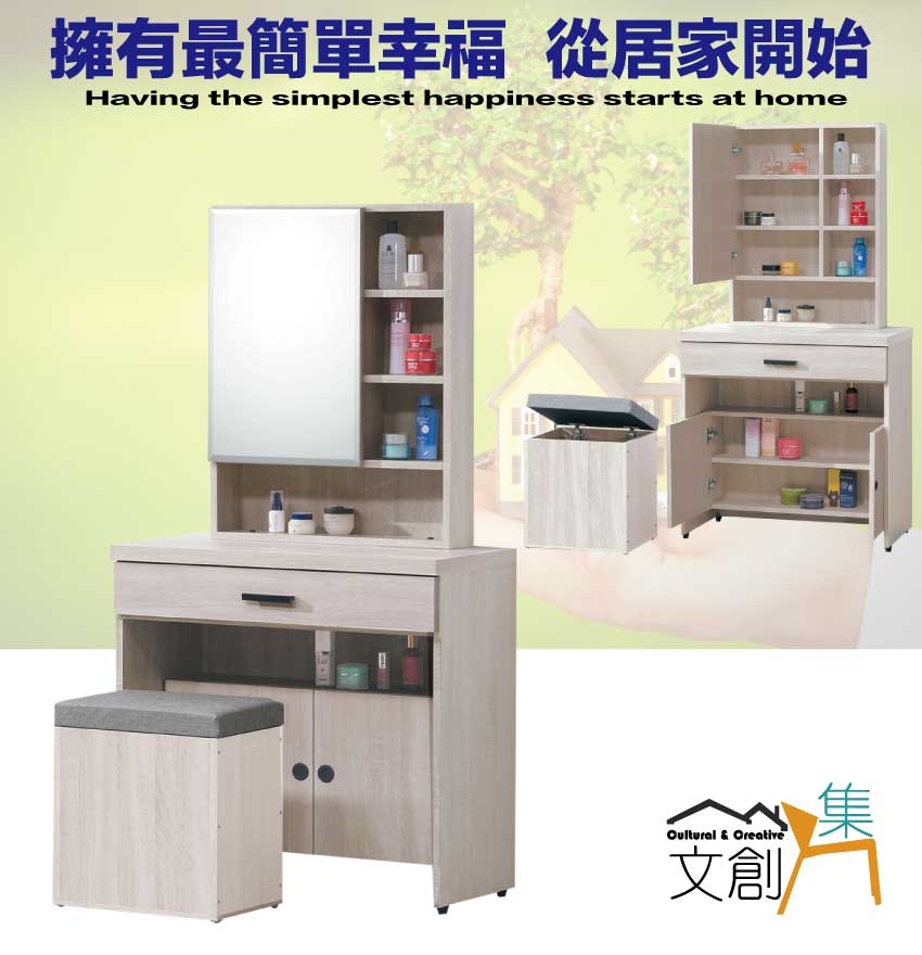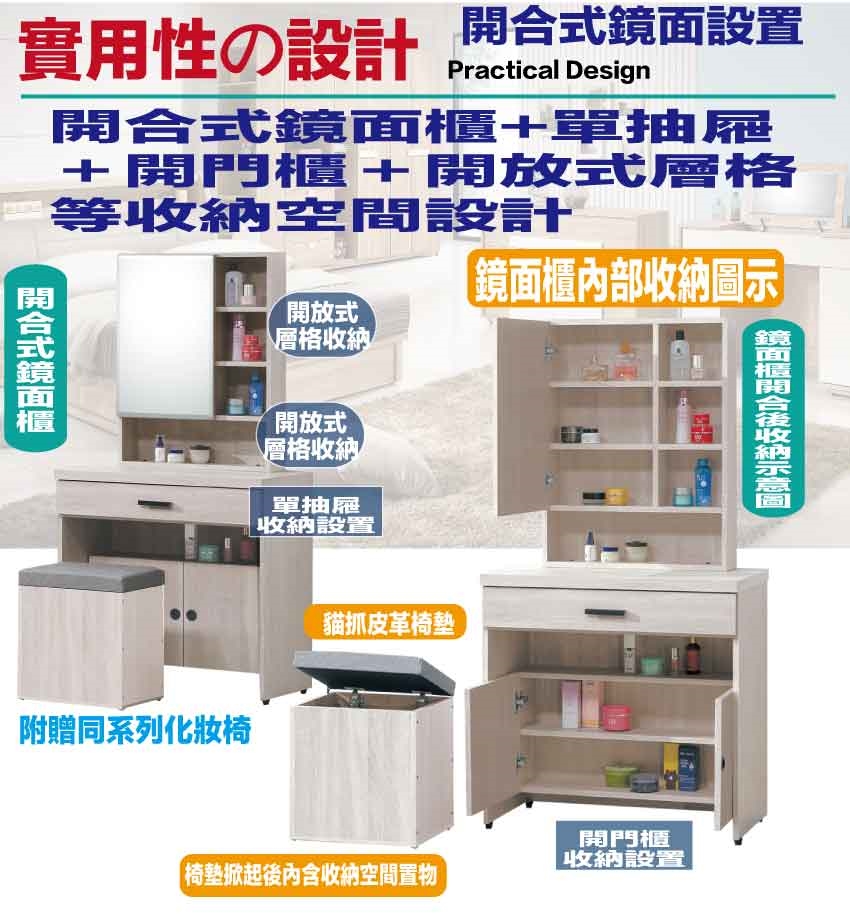 - ◆產品名稱:【綠家居】艾曼淺橡2.7尺開合鏡面鏡台/化妝台組合(含化妝椅)