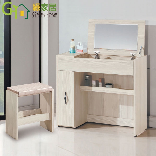 【綠家居】美尼利2.7尺上掀鏡面鏡台/化妝台組合(含化妝椅)