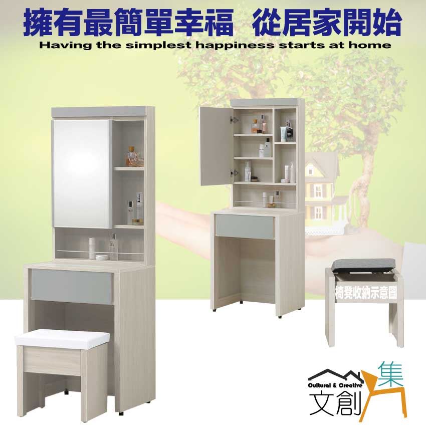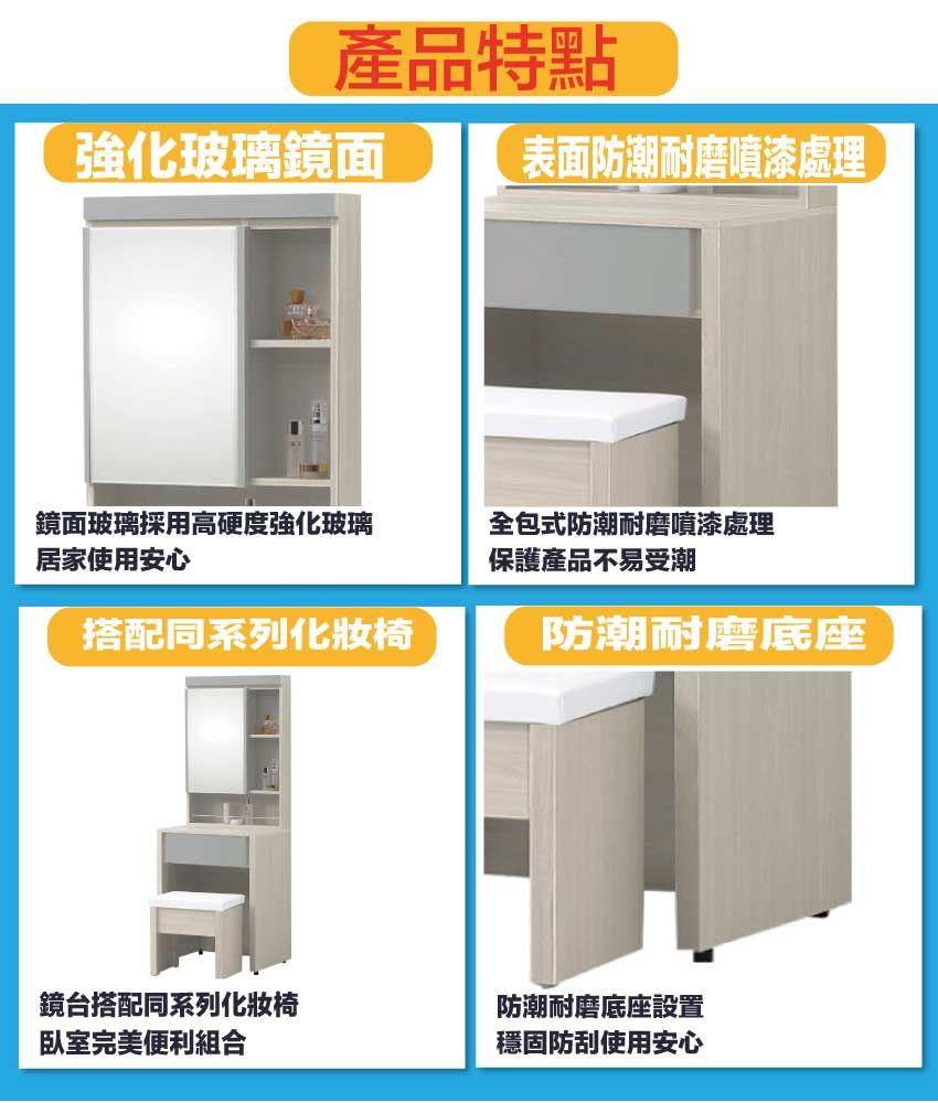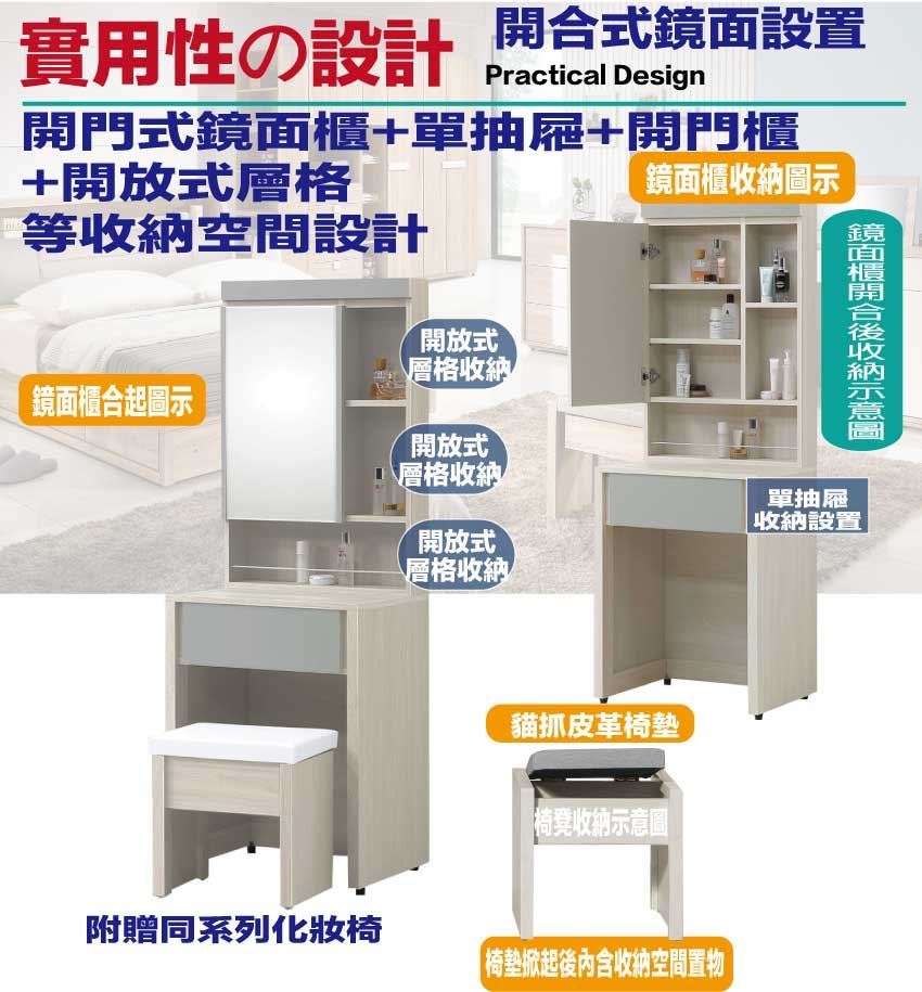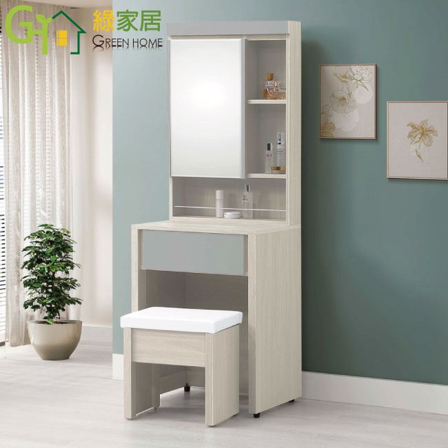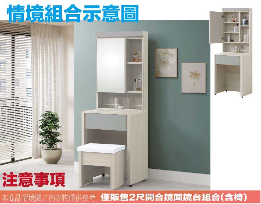- ◆產品名稱:【綠家居】奇伊2尺開合鏡面鏡台/化妝台組合(含化妝椅)