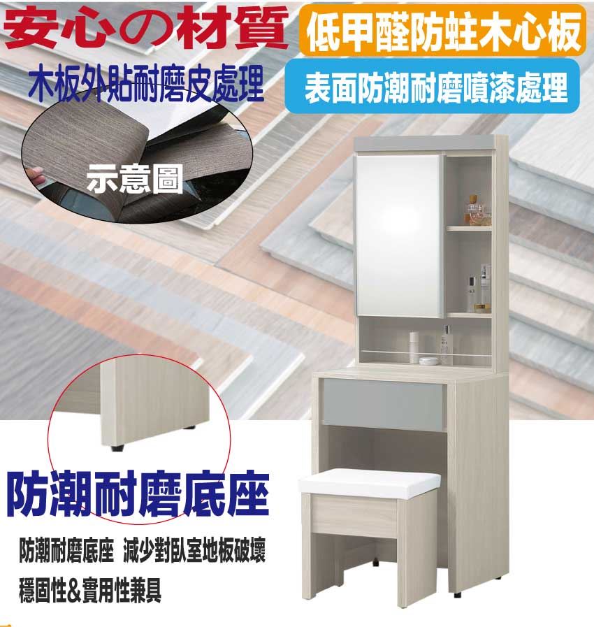 ★偏遠地區需額外加收運費,下標請先問與答詢問★ ★下訂前注意 由於商品流動較快,下訂前請先詢問是否有貨在下訂喔~★ 【綠家居】奇伊2尺開合鏡面鏡台/化妝台組合(含化妝椅) 木紋雙色系+安心材質製造,使用放心+搭配居家更便利,採用防蛀木心板+防潮耐磨底座+五金滑軌結構+強化玻璃鏡面等安心材質製造 ,外層採用防潮耐磨噴漆處理搭配採用開合鏡面櫃+單抽屜+內&外開放層格等收納空間設計,全由專人配送到家,專業安心服務,替你省下更多時間!