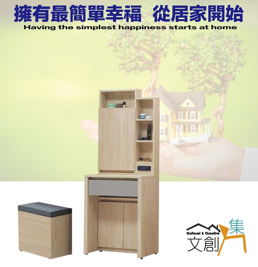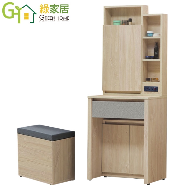 【綠家居】唐斯2尺開合鏡面鏡台組合(含化妝椅)