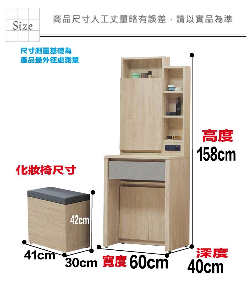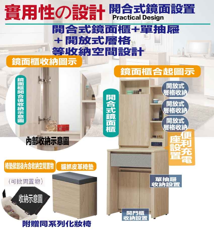 - ◆產品名稱: 【綠家居】唐斯2尺開合鏡面鏡台組合(含化妝椅)