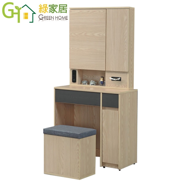 【綠家居】唐斯2.5尺雙色開合鏡面鏡台組合(含化妝椅)