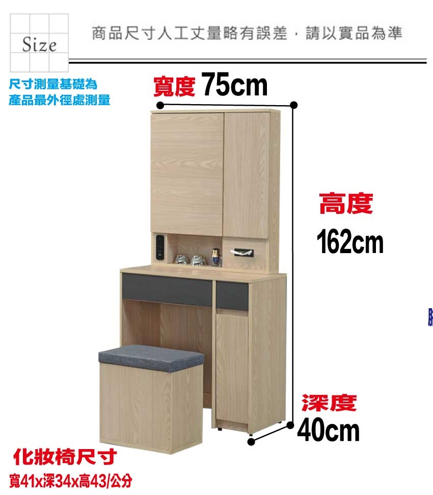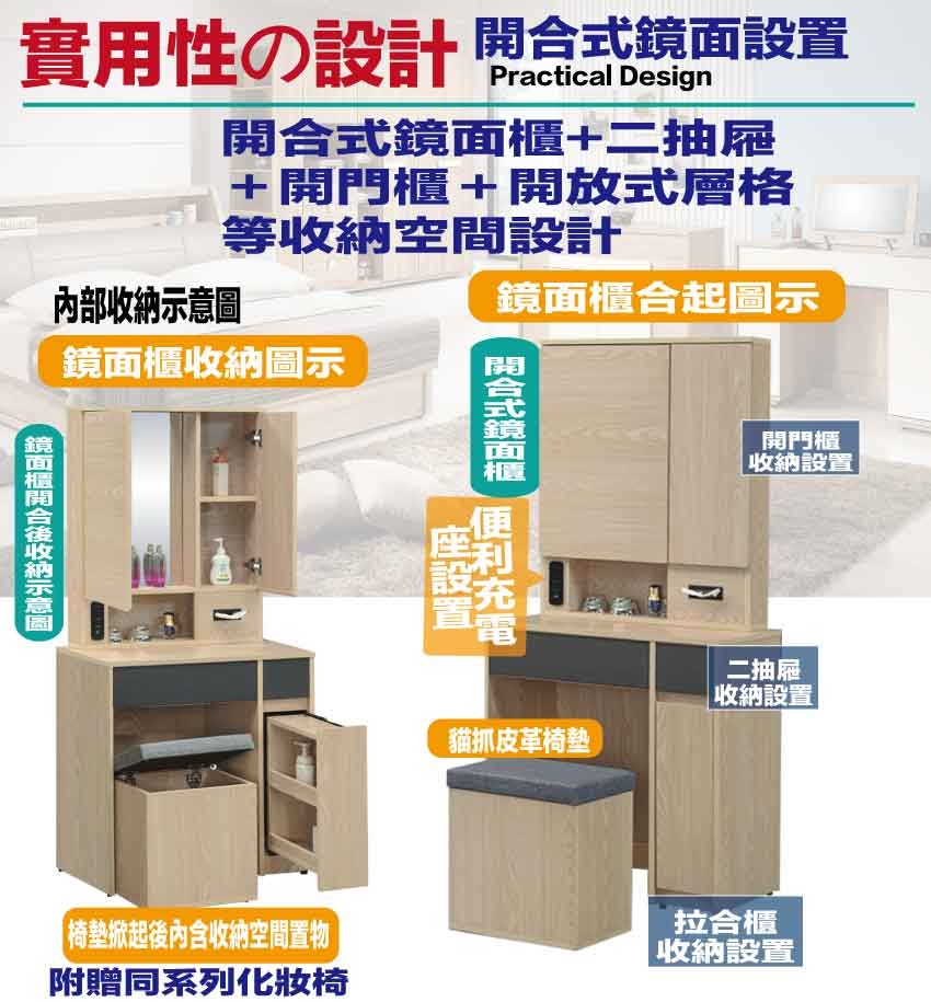 - ◆產品名稱:【綠家居】唐斯2.5尺雙色開合鏡面鏡台組合(含化妝椅)