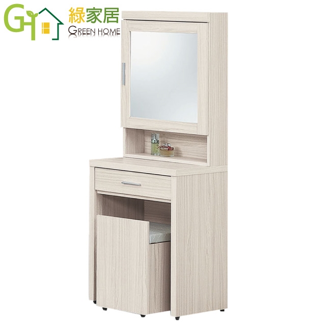 【綠家居】包格斯2尺開合鏡面鏡台組合(含化妝椅)