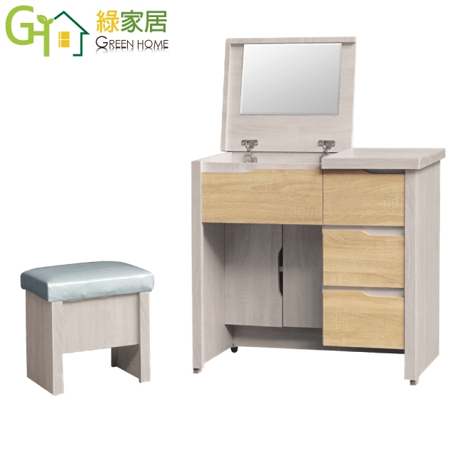 【綠家居】伊考斯2.7尺上掀鏡面鏡台組合(含化妝椅)