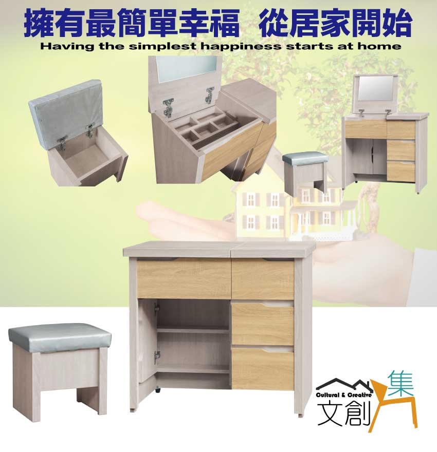 - ◆產品名稱:【綠家居】伊考斯2.7尺上掀鏡面鏡台組合(含化妝椅)