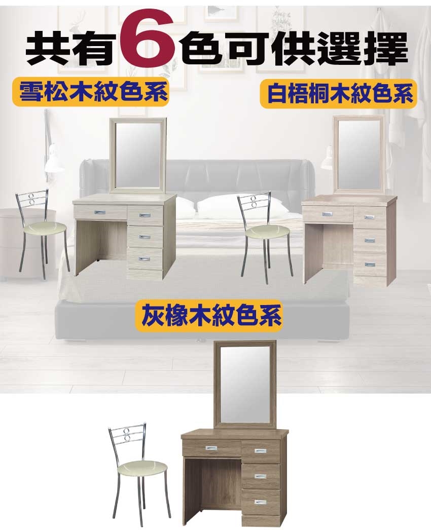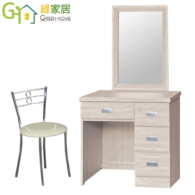 【綠家居】包格斯2.7尺四抽鏡面鏡台組合(六色可選+含化妝椅)