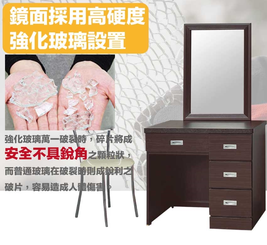 採用防蛀木心板+防潮耐磨底座+強化玻璃鏡面等安心材質製造