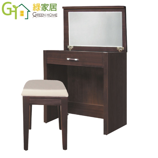 【綠家居】包格斯2尺上掀鏡面鏡台組合(三色可選+含化妝椅)