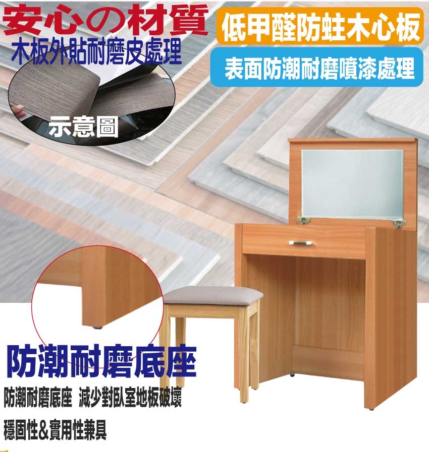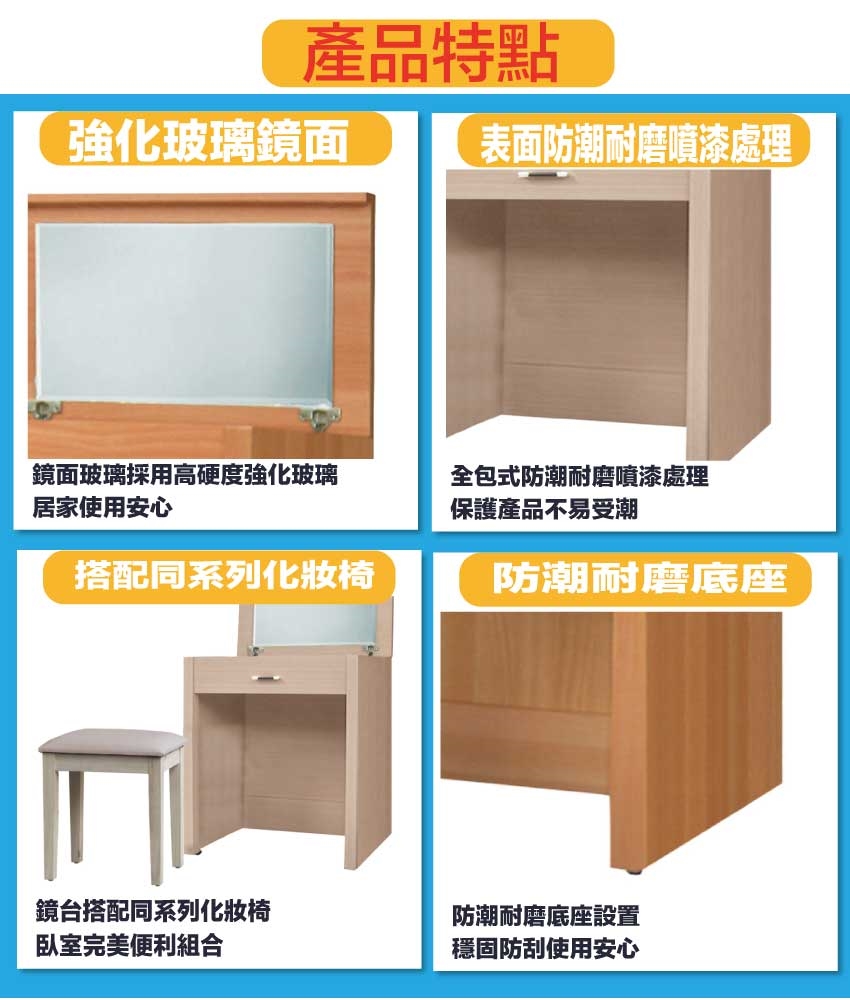 採用防蛀木心板+防潮耐磨底座+強化玻璃鏡面等安心材質製造
