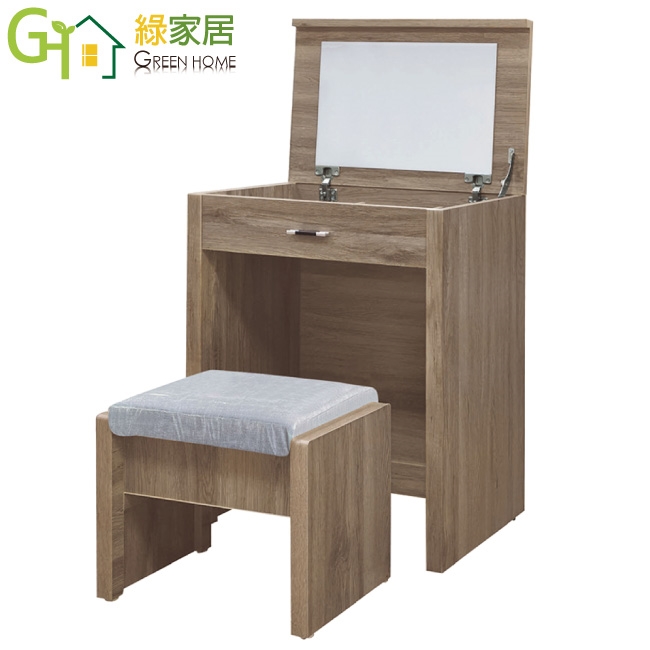 【綠家居】華格斯2尺上掀鏡面鏡台組合(三色可選+含化妝椅)