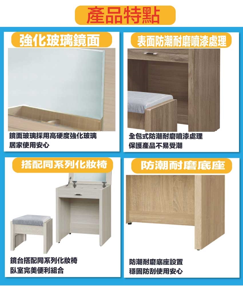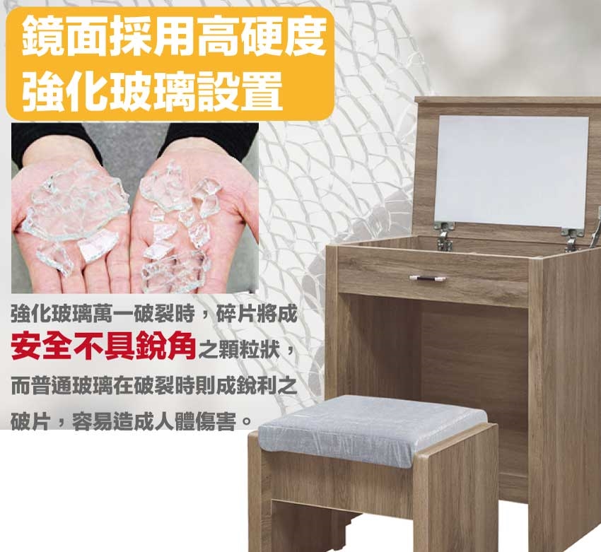 採用防蛀木心板+防潮耐磨底座+強化玻璃鏡面等安心材質製造