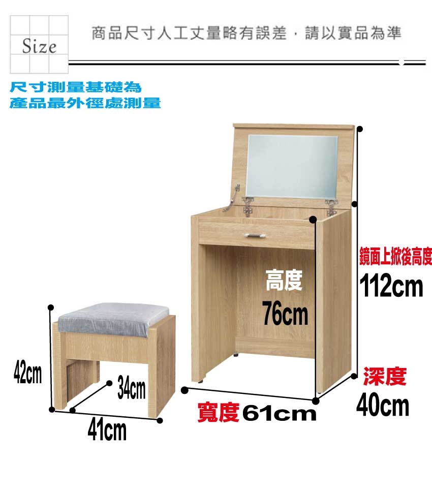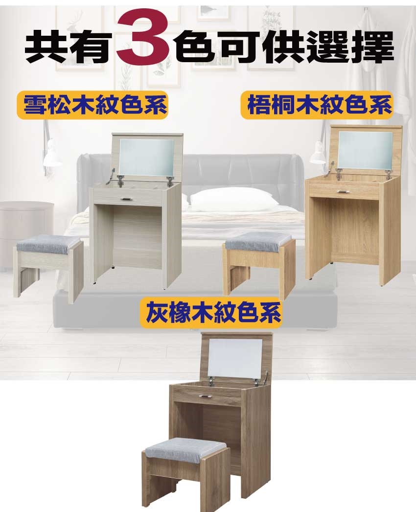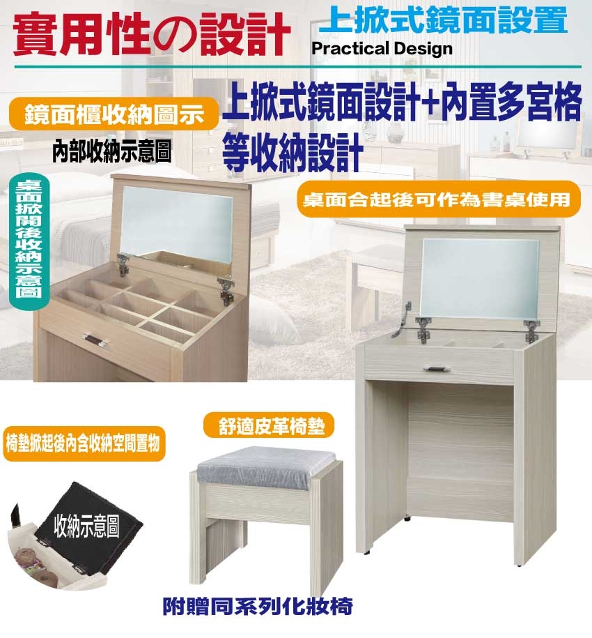- ◆產品名稱:【綠家居】華格斯2尺上掀鏡面鏡台組合(三色可選+含化妝椅)