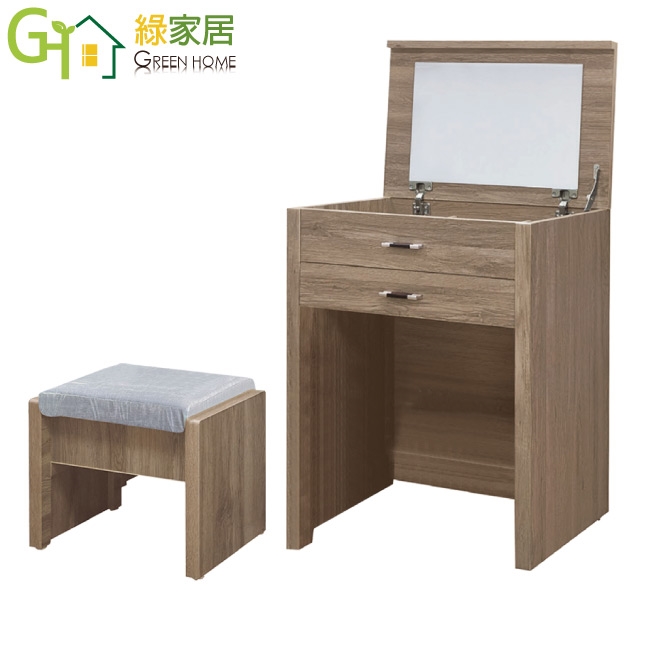 【綠家居】華格斯2尺上掀鏡面單抽鏡台組合(三色可選+含化妝椅)