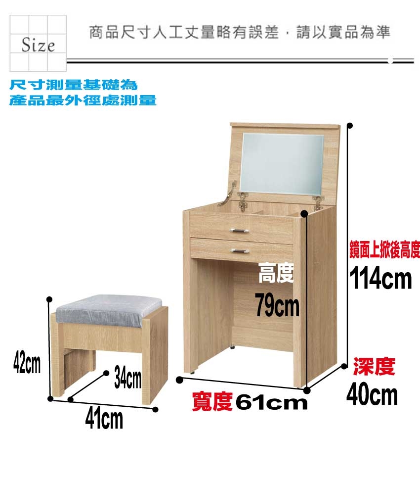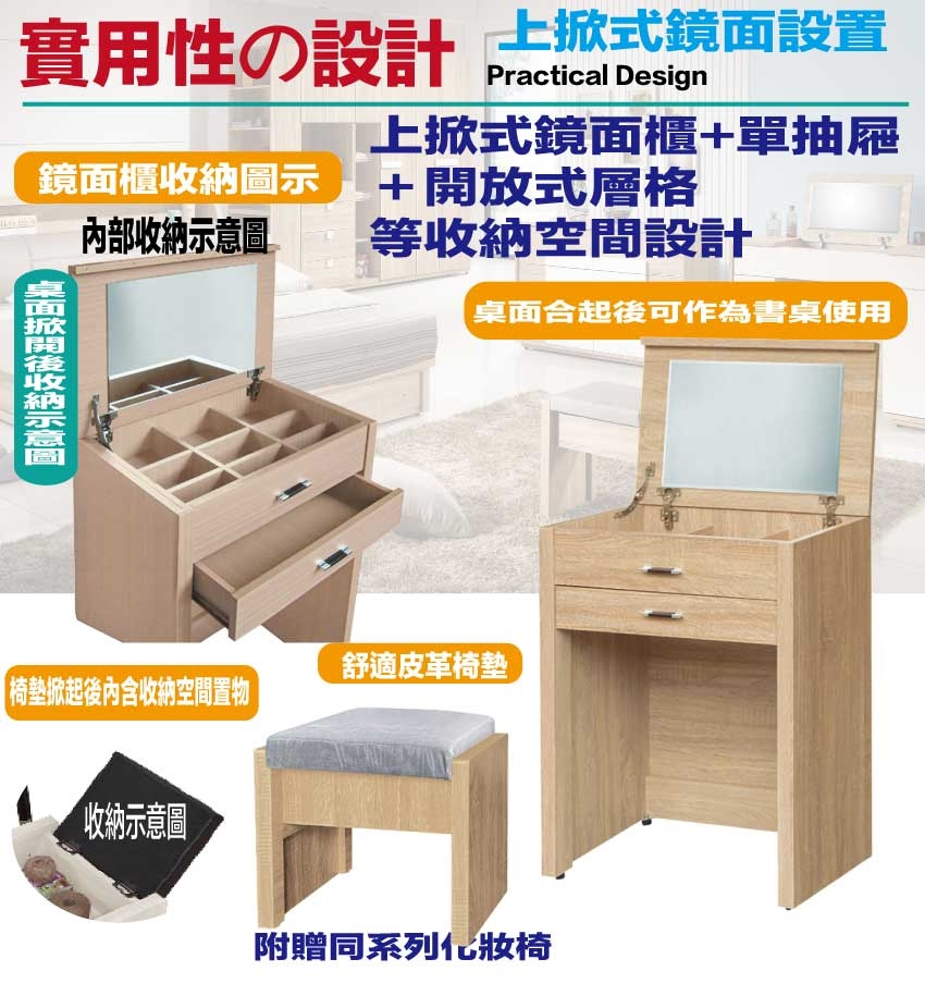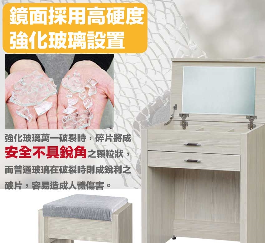 - ◆產品名稱: 【綠家居】華格斯2尺上掀鏡面單抽鏡台組合(三色可選+含化妝椅)