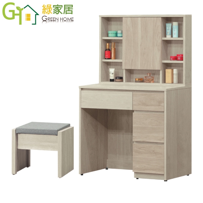 【綠家居】魯瑪2.7尺開合式鏡面四抽鏡台組合(含可收納化妝椅)