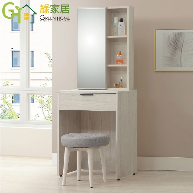 【綠家居】卡帝2尺開合式鏡面鏡台組合(含化妝椅)