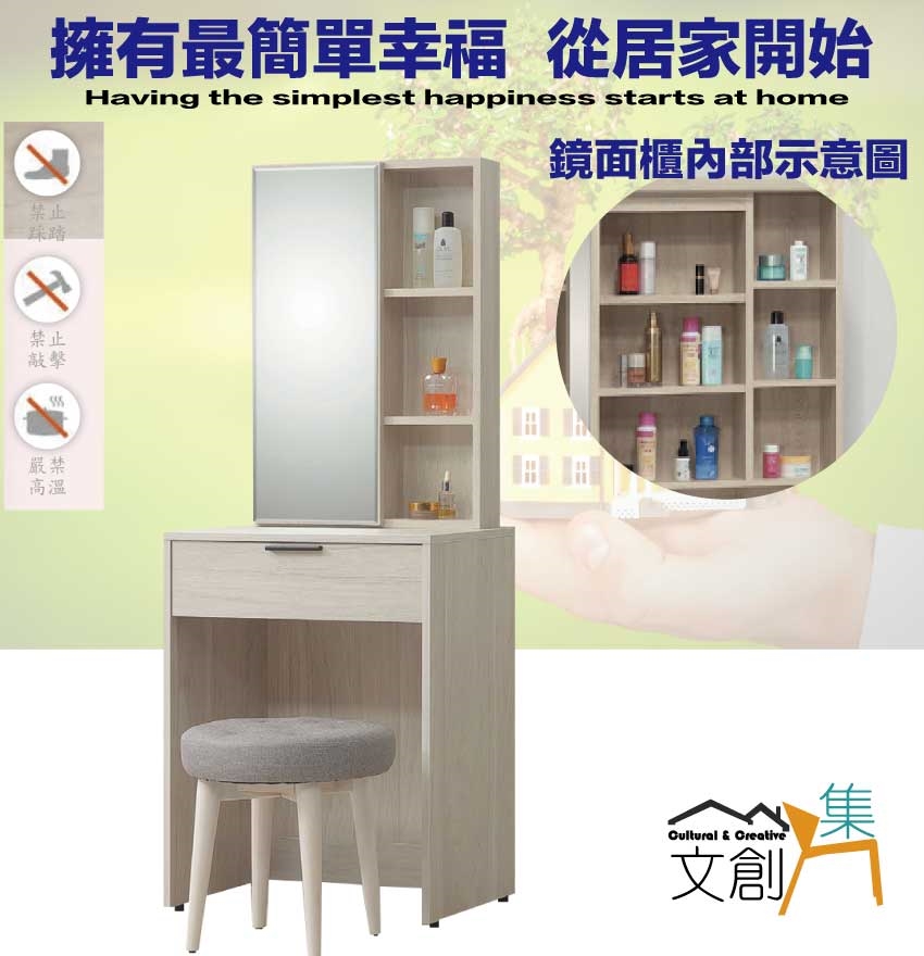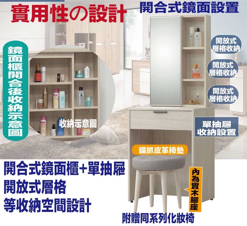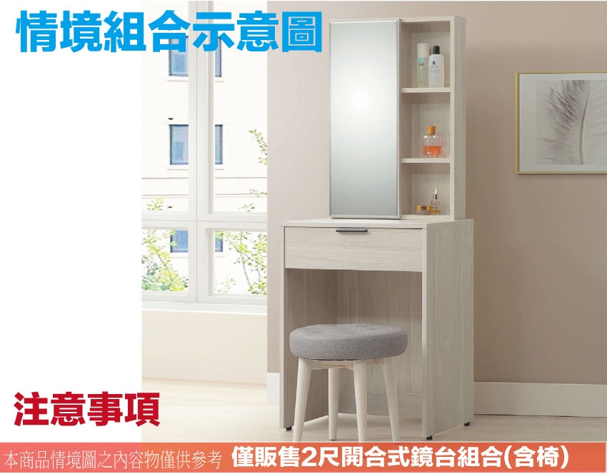 - ◆產品名稱:【綠家居】卡帝2尺開合式鏡面鏡台組合(含化妝椅)