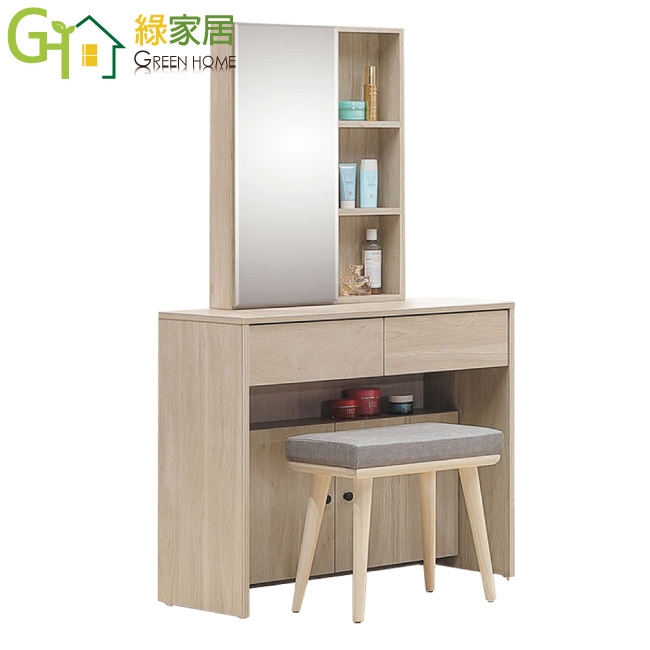 【綠家居】卡羅2.7尺開合式鏡面鏡台組合(含化妝椅)