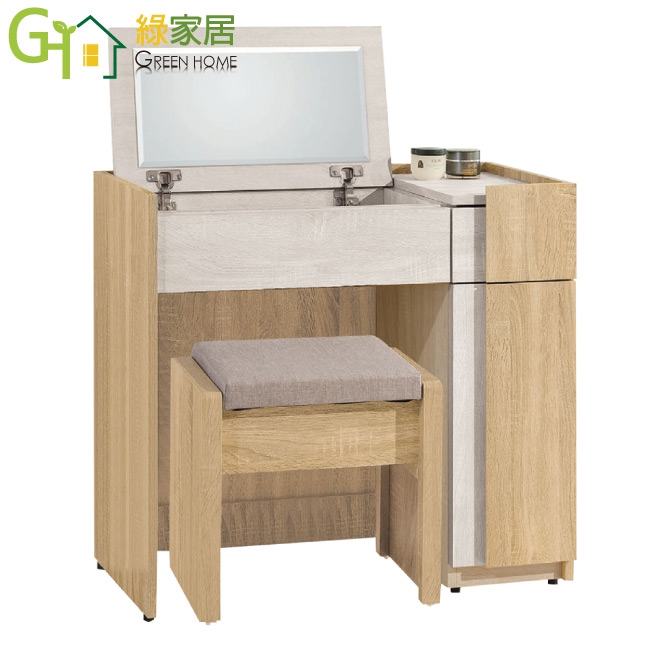 【綠家居】艾羅2.7尺上掀式鏡面鏡台組合(含化妝椅)