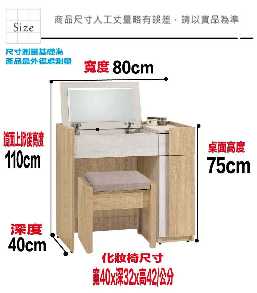 尺寸:(寬)80x(深)40x(高)75-110/公分