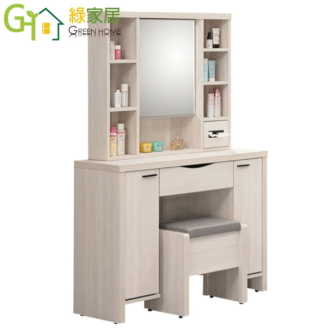 【綠家居】海島3.2尺開合式鏡面鏡台組合(含化妝椅)