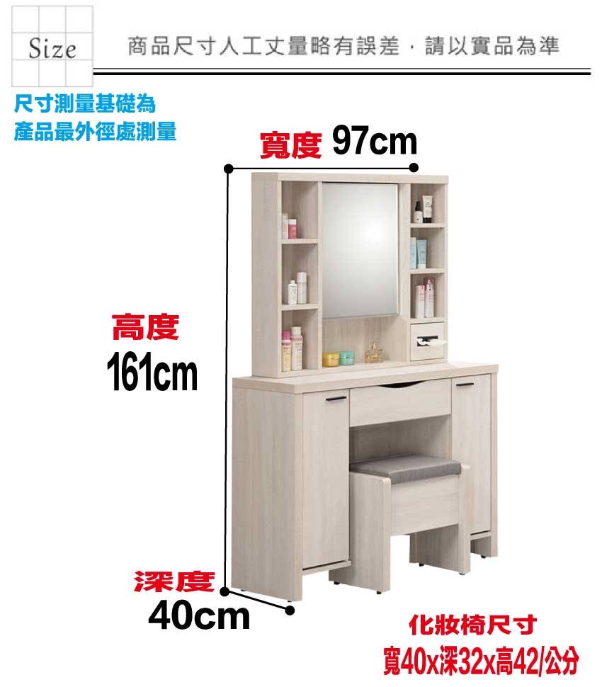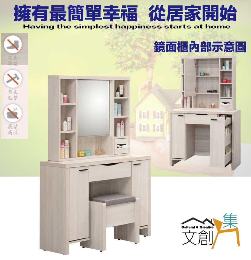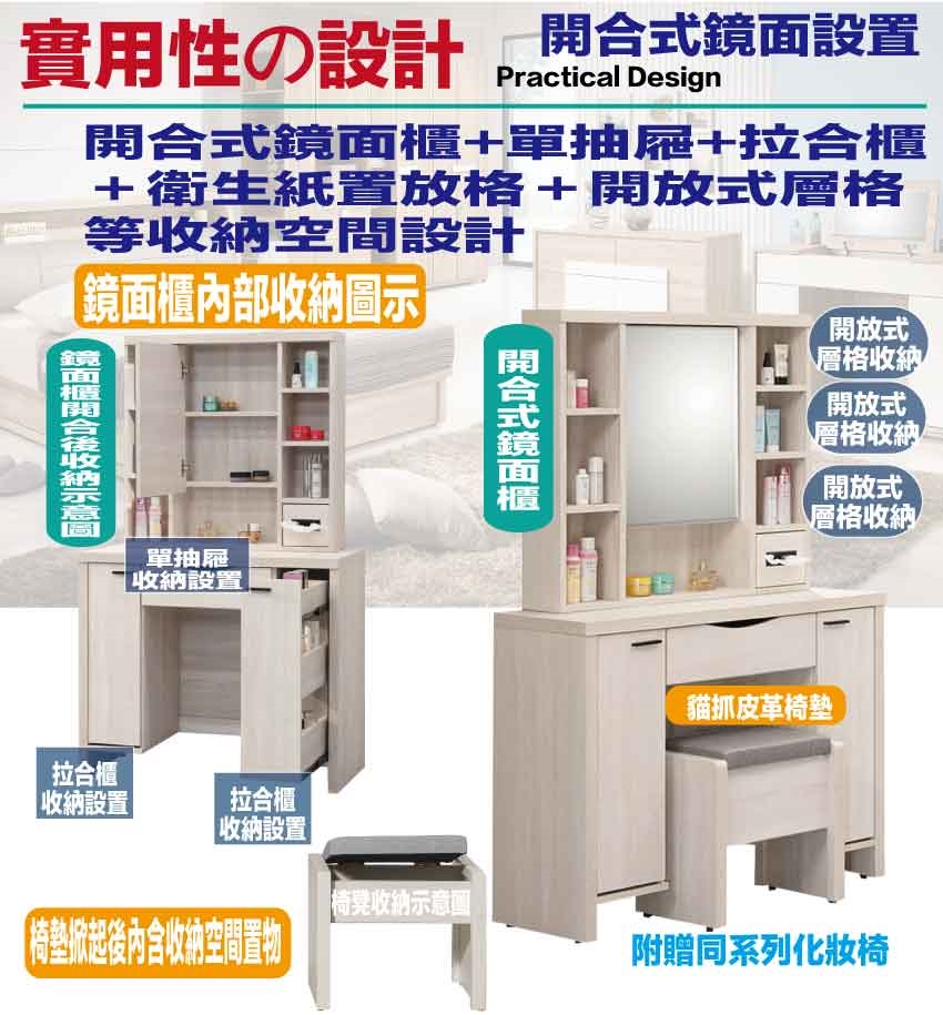 - ◆產品名稱:【綠家居】海島3.2尺開合式鏡面鏡台組合(含可收納化妝椅)