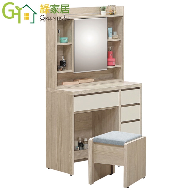 【綠家居】艾悠2.7尺開合式鏡面四抽鏡台組合(含化妝椅)