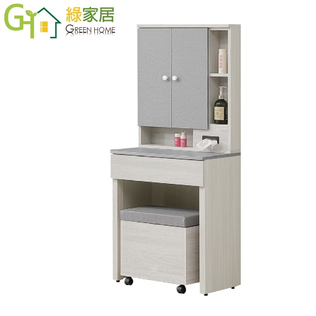 - 產品名稱:【綠家居】菲可2尺開合鏡面鏡台/化妝台組合(含可收納活動化妝椅)