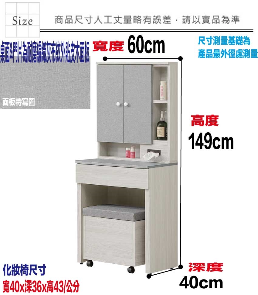 - 尺寸:(寬)60x(深)40x(高)149/公分