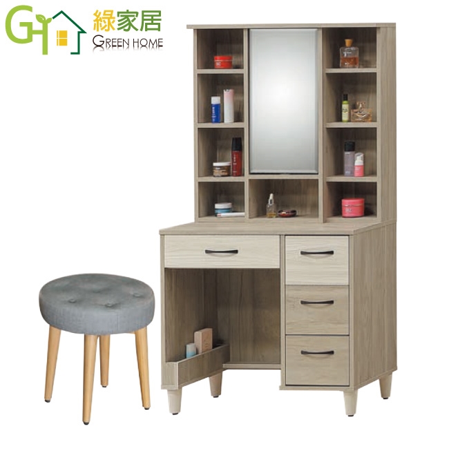 【綠家居】米賽倫2.7尺旋轉鏡面鏡台組合(二色可選+含化妝椅)