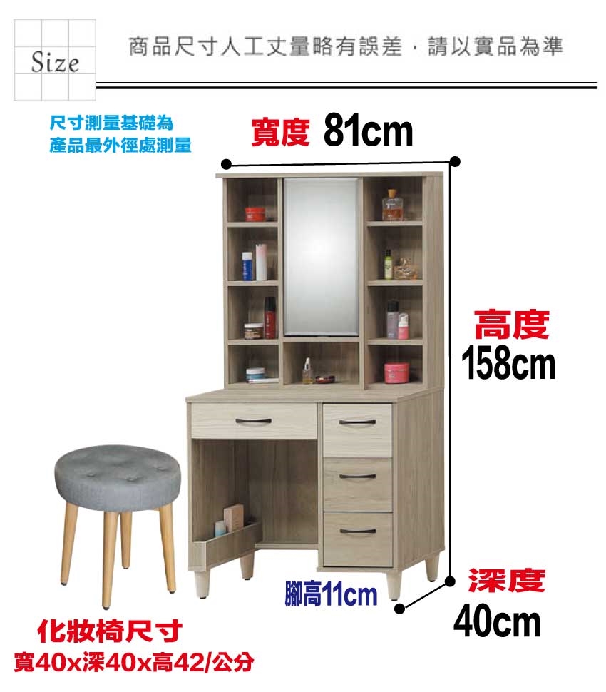 材質:防蛀木心板+防潮實木腳座+強化玻璃鏡面