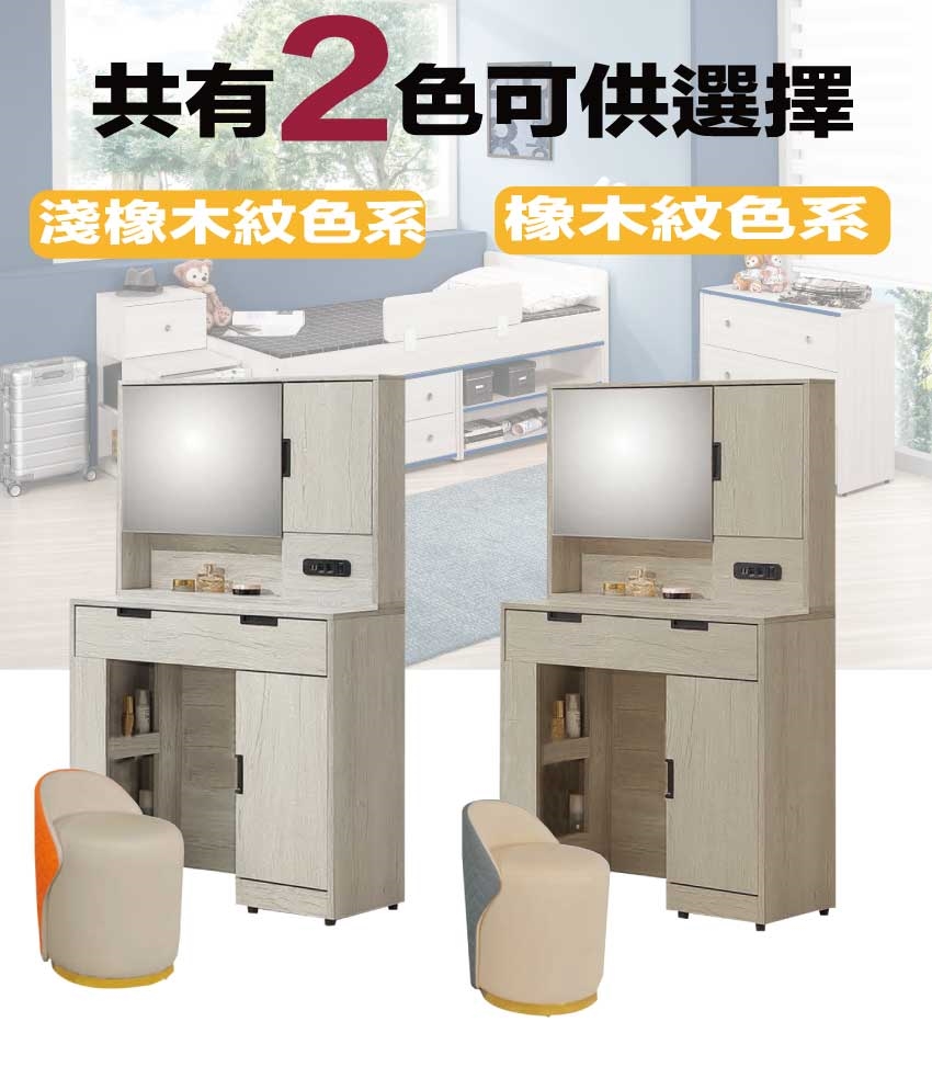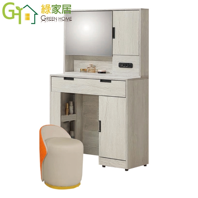 【綠家居】賽斯2.7尺開門鏡面鏡台組合合(二色可選+含化妝椅)
