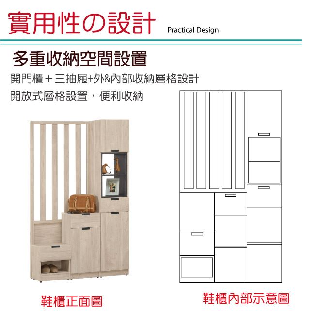 - 開門櫃+三抽屜+便利座鞋櫃