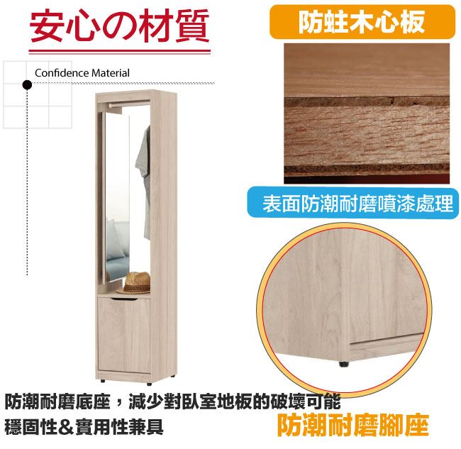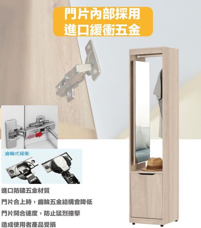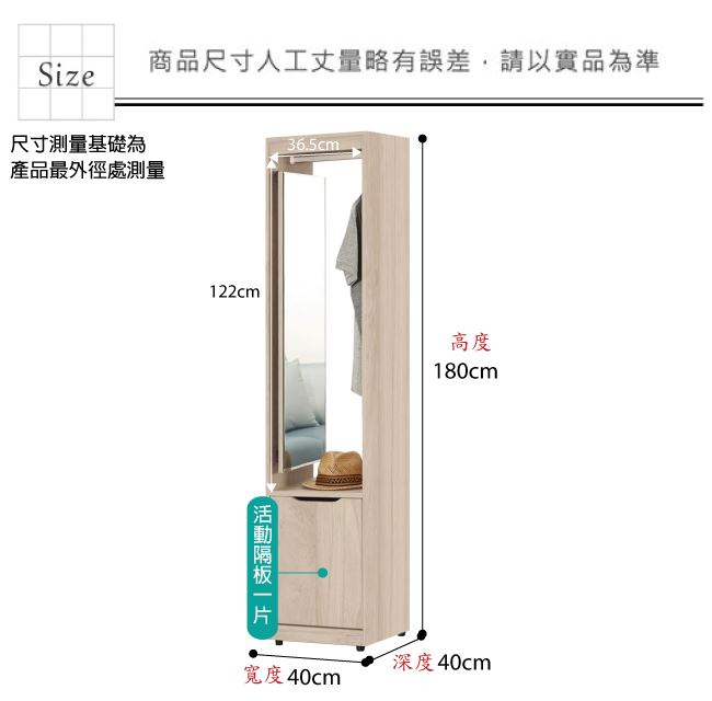 材質 | ◆產品名稱:【綠家居】麥格妮1.3尺鏡面玄關櫃 尺寸:(寬)40x(深)40(高)180/公分 ◆材質: 材質:防蛀木心板+防潮耐磨腳座+防夾手緩衝門片五金+強化玻璃鏡面 噴漆:防潮耐磨噴漆處理