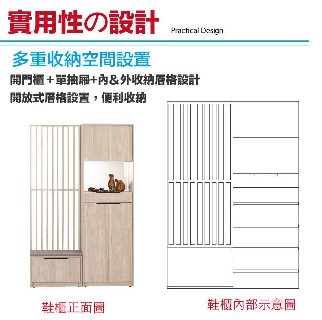 - 開門櫃+單抽屜+便利座鞋櫃