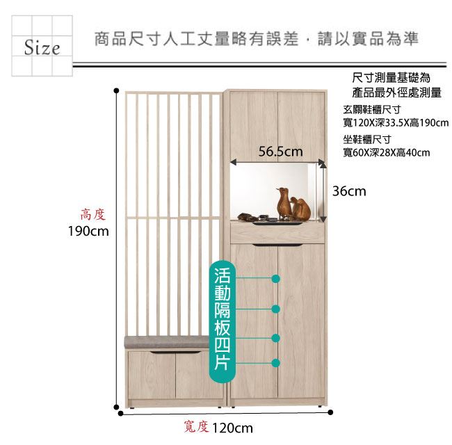 材質 | ◆產品名稱:【綠家居】麥格妮4尺六門單抽鏡面屏風玄關櫃/座鞋櫃組合 尺寸:(寬)120x(深)33.5(高)190/公分 ◆材質: 材質:防蛀木心板+防潮耐磨腳座+防夾手緩衝門片五金+五金滑軌結構+強化玻璃鏡面 噴漆:防潮耐磨噴漆處理