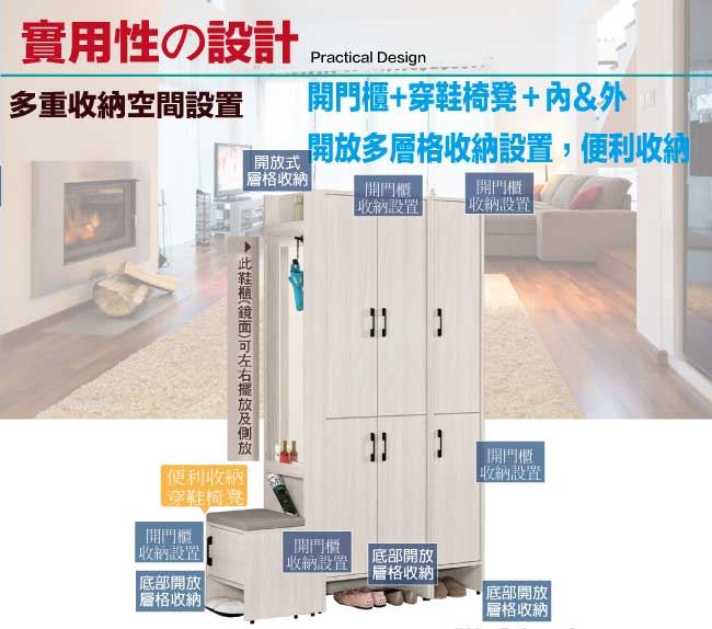 【綠家居】摩克4.3尺六門鏡面座鞋玄關櫃組合