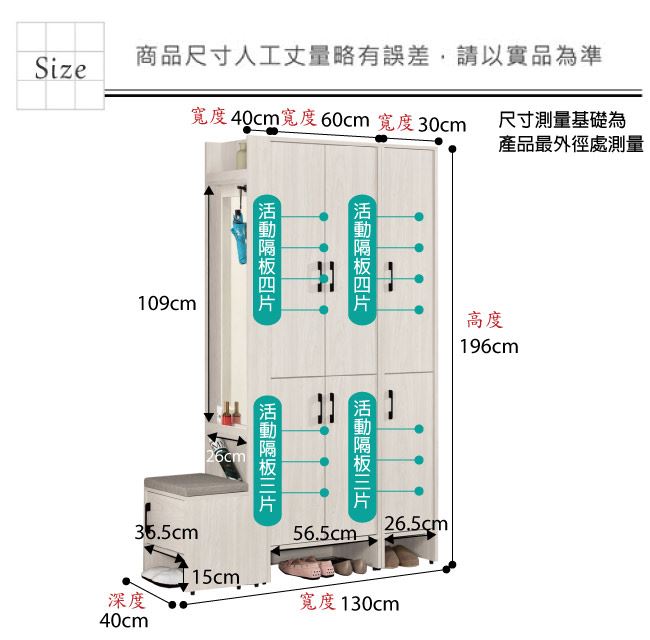 材質 | ◆產品名稱:【綠家居】摩克4.3尺六門鏡面座鞋玄關櫃組合 尺寸:(寬)130x(深)40(高)196/公分 ◆材質: 材質:防蛀木心板+防潮耐磨腳座+防夾手緩衝門片五金+強化玻璃鏡面 噴漆:防潮耐磨噴漆處理
