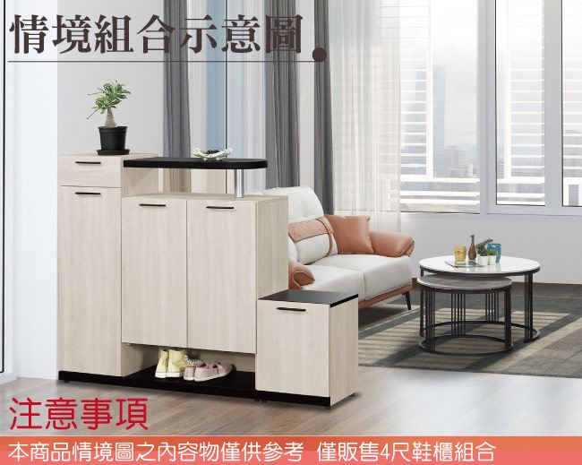 【綠家居】艾絲莉4尺三門單抽中高玄關鞋櫃