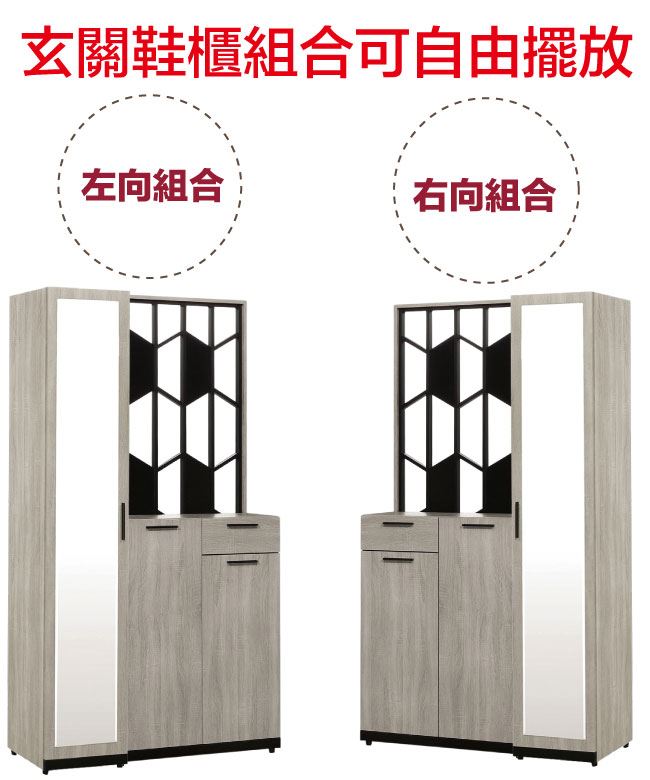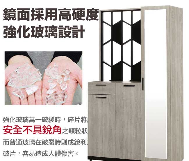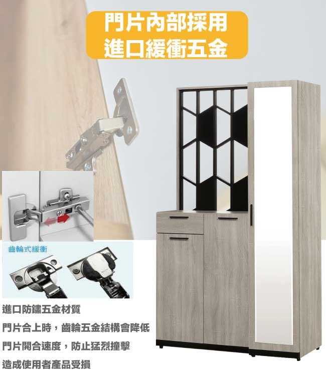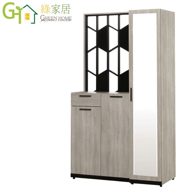 【綠家居】卡瑞4尺二門單抽高玄關屏風鏡面鞋櫃組合