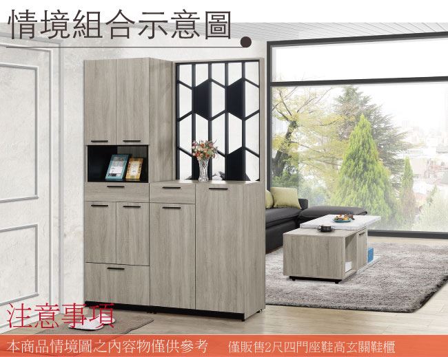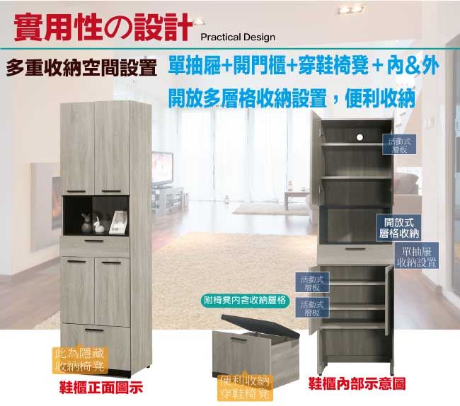【綠家居】卡瑞2尺四門單抽高玄關坐鞋櫃組合(內含可收納穿鞋椅凳)