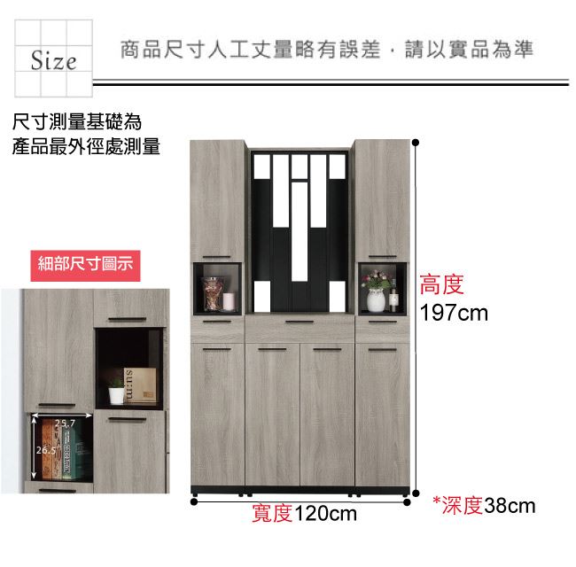 材質 | ◆產品名稱:【綠家居】卡瑞4尺六門三抽高玄關屏風鞋櫃組合 尺寸:(寬)120x(深)38(高)197公分 ◆材質: 材質:防蛀木心板+防潮耐磨腳座+防夾手緩衝門片五金+五金滑軌結構 噴漆:防潮耐磨噴漆處理