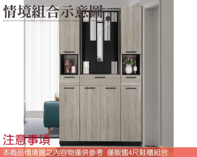 【綠家居】卡瑞4尺六門三抽高玄關屏風鞋櫃組合