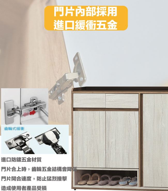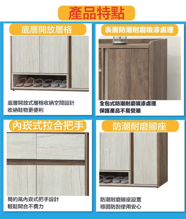 商品 介紹 | 【綠家居】克倫3.8尺三門二抽低玄關鞋櫃(二色可選) 二色可選+現代簡約風格+安心材質製造,使用放心+搭配居家更便利,整體採用防蛀木心板+防潮耐磨腳座+防夾手緩衝門片五金+五金滑軌結構等材質搭配外層採用優莉坦耐磨全包式噴漆處理 ,採用開門櫃+二抽屜+內&外開放層格等收納空間設計,全由專人配送到家,專業安心服務,替你省下更多時間! 【商品特色】 二色可選+現代簡約風格+安心材質製造,使用放心+搭配居家更便利 防蛀木心板++防夾手緩衝門片五金+五金滑軌結構等材質 採用開門櫃+二抽屜+內&外開放層格等收納空間設計 此商品不需要DIY組立,此商品為組立後之成品 品質保證、專業設計、貼心服務 全由專人配送到家,專業安心服務,替您省下更多時間 |